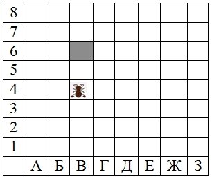Определите текст радиограммы. В ответе укажите, сколько букв было в исходной радиограмме. Вопрос id:51306 Тема/шкала: 6,06 Черепашка Исполнитель Муравей перемещается по полю, разделённому на клетки. Размер поля 8x8, строки нумеруются числами, столбцы обозначаются буквами. Муравей может выполнять команды движения:вверх N, вниз N, вправо N, влево N, (где N – целое число от 1 до 7), перемещающие исполнителя на N клеток вверх, вниз, вправо или влево соответственно. повтори k разкоманда1 команда2 команда3кц означает, что последовательность команд команда1 команда2 команда3 повторится k раз . ![]() Если на пути Муравья встречается кубик, то он перемещает его по ходу движения. Пусть, например, кубик находится в клетке В6. Если Муравей выполнит команды вверх 3 вправо 2, то сам окажется в клетке Д7, а кубик в клетке В8. Пусть Муравей и кубик расположены так, как указано на рисунке. Муравью был дан для исполнения следующий алгоритм: повтори 3 раз влево 2 вверх 2 вправо 3 вниз 2 кц В какой клетке окажется кубик после выполнения этого алгоритма?