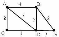 Черепашке был дан для исполнения следующий алгоритм: Повтори 5 [Вперед 10 Направо 120] Какая фигура появится на экране? ?) Правильный пятиугольник ?) Незамкнутая ломаная линия ?) Правильный треугольник ?) Правильный шестиугольник Вопрос id:52085 Тема/шкала: 8,08 определить значение переменной ( Использование переменных. Операции над переменными различных типов в языке программирования. B5) В программе «:=» обозначает оператор присваивания, знаки «+», « – », «*» и «/» – соответственно операции сложения, вычитания, умножения и деления. Правила выполнения операций и порядок действий соответствует правилам арифметики. Определите значение переменной a после исполнения данного алгоритма. a := 3 b := 4 + 2*a a := b / 5 * a Порядок действий соответствует правилам арифметики. В ответе укажите одно число — значение переменной a. Вопрос id:52086 Тема/шкала: 14,14 делитель (Умение создавать линейный алгоритм для формального исполнителя B1) У исполнителя Утроитель две команды, которым присвоены номера: 1. вычти 1 2. умножь на три Первая из них уменьшает число на экране на 1, вторая – утраивает его. Запишите порядок команд в алгоритме получения из числа 7 числа 13, содержащем не более 5 команд, указывая лишь номера команд. (Например, 21211 – это алгоритм: умножь на три вычти 1 умножь на три вычти 1 вычти 1, который преобразует число 2 в 13). Если таких алгоритмов более одного, то запишите любой из них. Вопрос id:52087 Тема/шкала: 15,15 размер файла Скорость передачи данных через ADSL-соединение равна 64000 бит/c. Передача файла через это соединение заняла 16 секунд. Определите размер файла в килобайтах. Вопрос id:52088 Тема/шкала: 1,01 размер сообщения В одном из вариантов кодировки Unicode на каждый символ отводится четыре байта. Определите информационный объём сообщения из тридцати двух символов в этой кодировке. ?) 256 бит ?) 64 байта ?) 512 бит ?) 1024 бит Вопрос id:52089 Тема/шкала: 2,02 истинно высказывание Для какого из указанных значений числа X истинно выражение: (X > 4) И НЕ (X > 5) ?) 5 ?) 6 ?) 2 ?) 4 Вопрос id:52090 Тема/шкала: 11,соответствие схемы В таблице приведена стоимость перевозок между пятью железнодорожными станциями, обозначенными буквами A, B, C, D и E. Укажите схему, соответствующую таблице.