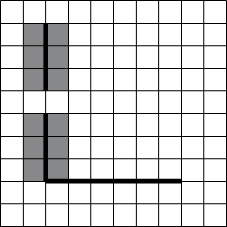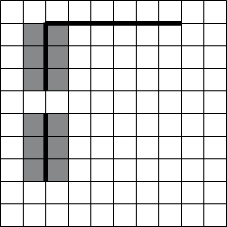 Напишите для Робота алгоритм, закрашивающий все клетки, расположенные непосредственно левее и правее вертикальной стены. Проход должен остаться незакрашенным. Робот должен закрасить только клетки, удовлетворяющие данному условию. Например, для приведённого выше рисунка Робот должен закрасить следующие клетки (см. рисунок).
