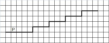 Например, для движения вправо, пока это возможно, можно использовать следующий алгоритм: нц пока справа свободно вправо кц Также у Робота есть команда закрасить, при которой закрашивается клетка, в которой Робот находится в настоящий момент. Выполните задание. На бесконечном поле имеется горизонтальная стена, бесконечно продолжающаяся влево и заканчивающаяся лестницей, которая поднимается слева направо. Высота каждой ступени – одна клетка, ширина – три клетки. Робот находится на горизонтальной стене, левее лестницы. На рисунке указан один из возможных способов расположения лестницы и Робота (Робот обозначен буквой «Р»).