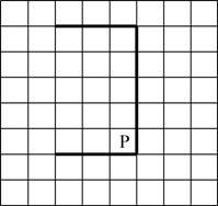 Выполните задание. На бесконечном поле имеется стена, состоящая из трёх последовательных отрезков: вправо, вниз, влево. Все отрезки неизвестной длины. Робот находится в клетке, расположенной в нижнем углу, который образуется вторым и третьим отрезком. На рисунке указан один из возможных способов расположения стены и Робота (Робот обозначен буквой «Р»).