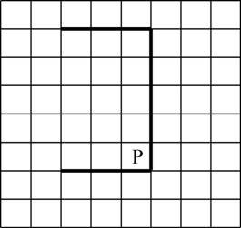 Выполните задание. На бесконечном поле имеются четыре стены, расположенные в форме прямоугольника. Длины вертикальных и горизонтальных стен неизвестны. Робот находится в клетке, расположенной в левом верхнем углу прямоугольника. На рисунке указан один из возможных способов расположения стен и Робота (Робот обозначен буквой «Р»).