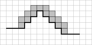 Напишите для Робота алгоритм, закрашивающий все клетки, расположенные ниже третьего отрезка. Робот должен закрасить только клетки, удовлетворяющие данному условию. Например, для приведённого выше рисунка Робот должен закрасить следующие клетки (см. рисунок).