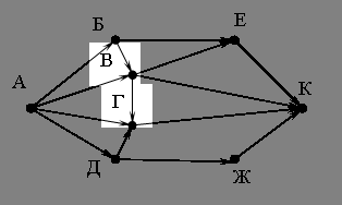 Некоторые шифровки можно расшифровать не одним способом. Например, 00010101 может означать не только СКА, но и СНК. Даны три кодовые цепочки: 100101000 100000101 0110001 Найдите среди них ту, которая имеет только одну расшифровку, и запишите в ответе расшифрованное слово. Вопрос id:51099 Тема/шкала: 1,01 размер сообщения Статья, набранная на компьютере, содержит 64 страницы, на каждой странице 40 строк, в каждой строке 40 символов. Определите размер статьи в кодировке КОИ-8, в которой каждый символ кодируется 8 битами. ?) 200 Кбайт ?) 800 байт ?) 1600 байт ?) 100 Кбайт Вопрос id:51100 Тема/шкала: 16,16 цепочки Некоторый алгоритм из одной цепочки символов получает новую цепочку следующим образом. Сначала вычисляется длина исходной цепочки символов; если она нечётна, то удаляется первый символ цепочки, а если чётна, то в начало цепочки добавляется символ Г. В полученной цепочке символов каждая буква заменяется буквой, следующей за ней в русском алфавите (А – на Б, Б – на В и т. д., а Я – на А). Получившаяся таким образом цепочка является результатом работы алгоритма. Например, если исходной была цепочка РУКА, то результатом работы алгоритма будет цепочка ДСФЛБ, а если исходной была цепочка СОН, то результатом работы алгоритма будет цепочка ПО. Дана цепочка символов РОГ. Какая цепочка символов получится, если к данной цепочке применить описанный алгоритм дважды (т. е. применить алгоритм к данной цепочке, а затем к результату вновь применить алгоритм)? Русский алфавит: АБВГДЕЁЖЗИЙКЛМНОПРСТУФХЦЧШЩЪЫЬЭЮЯ Вопрос id:51101 Тема/шкала: 11,11 схема дорог (Умение представлять и считывать данные в разных типах информационных моделей B9) На рисунке – схема дорог, связывающих города А, Б, В, Г, Д, Е, Ж и К. По каждой дороге можно двигаться только в одном направлении, указанном стрелкой. Сколько существует различных путей из города А в город К? ![]() Вопрос id:51102 Тема/шкала: 16,16 цепочки Некоторый алгоритм из одной цепочки символов получает новую цепочку следующим образом. Сначала вычисляется длина исходной цепочки символов; если она чётна, то удаляется последний символ цепочки, а если нечётна, то в начало цепочки добавляется символ С. В полученной цепочке символов каждая буква заменяется буквой, следующей за ней в русском алфавите (А – на Б, Б – на В и т. д., а Я – на А). Получившаяся таким образом цепочка является результатом работы алгоритма. Например, если исходной была цепочка НОГА, то результатом работы алгоритма будет цепочка ОПД, а если исходной была цепочка ТОН, то результатом работы алгоритма будет цепочка ТУПО. Дана цепочка символов ПЛОТ. Какая цепочка символов получится, если к данной цепочке применить описанный алгоритм дважды (т. е. применить алгоритм к данной цепочке, а затем к результату вновь применить алгоритм)? Русский алфавит: АБВГДЕЁЖЗИЙКЛМНОПРСТУФХЦЧШЩЪЫЬЭЮЯ Вопрос id:51103 Тема/шкала: 16,16 цепочки Некоторый алгоритм из одной цепочки символов получает новую цепочку следующим образом. Сначала вычисляется длина исходной цепочки символов; если она нечётна, то удаляется последний символ цепочки, а если чётна, то в начало цепочки добавляется символ О. В полученной цепочке символов каждая буква заменяется буквой, следующей за ней в русском алфавите (А – на Б, Б – на В и т. д., а Я – на А). Получившаяся таким образом цепочка является результатом работы алгоритма. Например, если исходной была цепочка РУ