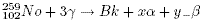?) курчатовий-261 ?) лоуренсий-250 ?) нильсборий-254 ?) курчатовий-260 Вопрос id:67150 Тема/шкала: Неорганическая химия В результате распада 7,77 мг нобелия-259 в ядерной реакции выделилось 54,18 • 1018 электронов. Укажите относительную атомную массу образовавшегося изотопа берклия