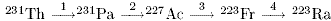 ?) нильсборий-254 ?) курчатовий-251 ?) нильсборий-260 ?) лоуренсий-250 Вопрос id:67172 Тема/шкала: Неорганическая химия В результате ядерной реакции 2713Al + 21H → 42He + ... образуется изотоп: ?) 3116S ?) 2512Mg ?) 2914Si ?) 2513Al Вопрос id:67173 Тема/шкала: Неорганическая химия На каких ступенях следующей цепи превращений происходит α- излучение?