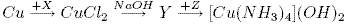 ?) хлор, гидроксид меди(II), аммиак ?) соляная кислота, гидроксид меди(II), гидроксид натрия ?) хлорид цинка, гидроксид меди(II), вода ?) соляная кислота, гидроксид меди(II), аммиачная вода Вопрос id:67746 Тема/шкала: Неорганическая химия ОпBределите вещества X, Y, Z, образующиеся в результате следующих превращений: