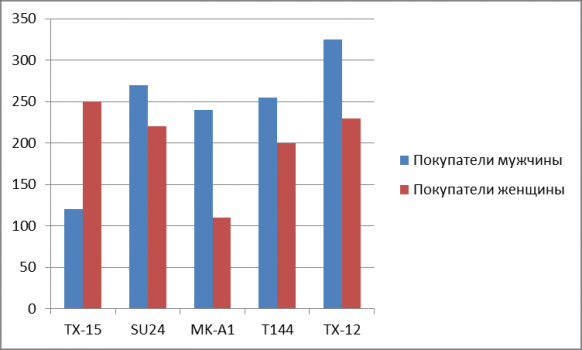 ?) Бишоптон ?) Раннимид ?) Чэдлинг ?) Сандерсли Вопрос id:74158 Тема/шкала: анализ диаграмм Число сотовых телефонов, проданных компанией Х в 2001 году Распределение покупателей модели TX-12 по возрастам Каков примерно процент всех моделей ТХ-15, купленных женщинами? ?) 31% ?) 80% ?) 12,5% ?) 50% ?) 66,6% Вопрос id:74159 Тема/шкала: анализ диаграмм Число сотовых телефонов, проданных компанией Х в 2001 году Распределение покупателей модели TX-12 по возрастам По какой из моделей сотовых телефонов соотношение покупателей-мужчин к покупателям-женщинам минимально? ?) TX-15 ?) TX-12 ?) T44 ?) MK-A1 ?) SU24 Вопрос id:74160 Тема/шкала: анализ диаграмм Число сотовых телефонов, проданных компанией Х в 2001 году Распределение покупателей модели TX-12 по возрастам Сколько примерно покупателей модели ТХ-12 входит в возрастную категорию 35—49 лет? ?) 96 ?) 28 ?) 85 ?) 32 ?) 48 Вопрос id:74161 Тема/шкала: анализ диаграмм Число сотовых телефонов, проданных компанией Х в 2001 году Распределение покупателей модели TX-12 по возрастам Прогнозы на 2002 год показывают, что продажа модели МК-А1 упадет на 20%. Как предполагается, соотношение между покупателями-мужчинами и покупателями-женщинами останется прежним. Сколько моделей МК-А1, по прогнозам на 2002 год, приобретут женщины? ?) 96 ?) 112 ?) 104 ?) 82 ?) 86 Вопрос id:74162 Тема/шкала: анализ таблиц Предпочтение взрослых при выборе телеканала (%) | Год | BBC1 | BBC2 | ITV