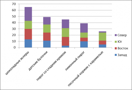 Какова примерно прибыль от продажи пирогов со сладким кремом в северном филиале? |