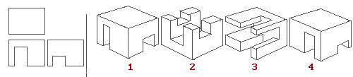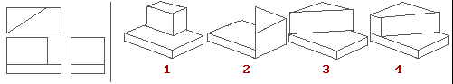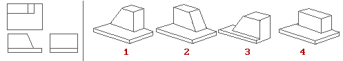 Выберите трехмерный рисунок, проекция которого представлена слева:
