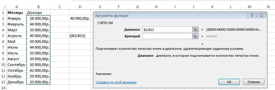 ![]() Какие из нижеследующих утверждений не являются истинными? Указать два правильных ответа. ?) После преобразования дробного значения ячейки D2 в проценты для их распространения на ячейки D3:D13 необходимо воспользоваться маркером автозаполнения ?) После преобразования дробного значения ячейки D2 в проценты они автоматически распространятся на ячейки D3:D13 ?) Для создания вычисляемого столбца в таблицу должен быть преобразован диапазон ячеек A1:C13 ?) Для создания вычисляемого столбца в таблицу должен быть преобразован диапазон ячеек A1:D13 ?) После нажатия клавиши Enter будет создан заполненный дробными значениями вычисляемый столбец D2:D13 Вопрос id:84131 Тема/шкала: Формулы и функции В категории текстовых функций есть функция КОДСИМВ, возвращающая в стандарте ANSI числовой код первого символа текстовой строки. Какая из перечисленных текстовых функций выполняет обратное преобразование, т.е. возвращает соответствующий числовому коду ANSI символ? ?) СИМВОЛ ?) ЗНАЧЕН ?) ТЕКСТ ?) ЧЗНАЧ ?) ЛЕВСИМВ Вопрос id:84132 Тема/шкала: Новые возможности Excel 2013 Как известно, книги Excel 2013 можно сохранять в "облачном хранилище" SkyDrive. Перечислите все возможности общего доступа к такой книге других пользователей ?) Пригласить других людей, Отправить по электронной почте ?) Пригласить других людей, Получить ссылку, Опубликовать в социальных сетях ?) Пригласить других людей, Получить ссылку, Опубликовать в социальных сетях, Отправить по электронной почте ?) Получить ссылку, Опубликовать в социальных сетях ?) Получить ссылку, Опубликовать в социальных сетях, Отправить по электронной почте Вопрос id:84133 Тема/шкала: Формулы и функции Посредством функции СЧЁТЕСЛИ требуется подсчитать число месяцев с доходами, превышающими 40000 руб.