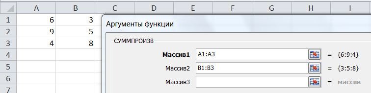 ![]() Как это сделать? ?) "Вид" -> "Разделить" ?) "Вид" -> "Новое окно", "Вид" -> "Разделить" ?) "Вид" -> "Новое окно", "Вид" -> "Упорядочить все" -> "Слева направо" ?) "Вид" -> "Страничный режим" ?) "Вид" -> "Новое окно", "Вид" -> "Страничный режим" Вопрос id:84146 Тема/шкала: Формулы и функции В категории математических функций существует функция СУММПРОИЗВЕД, возвращающая сумму произведений нескольких диапазонов ячеек или массивов.
