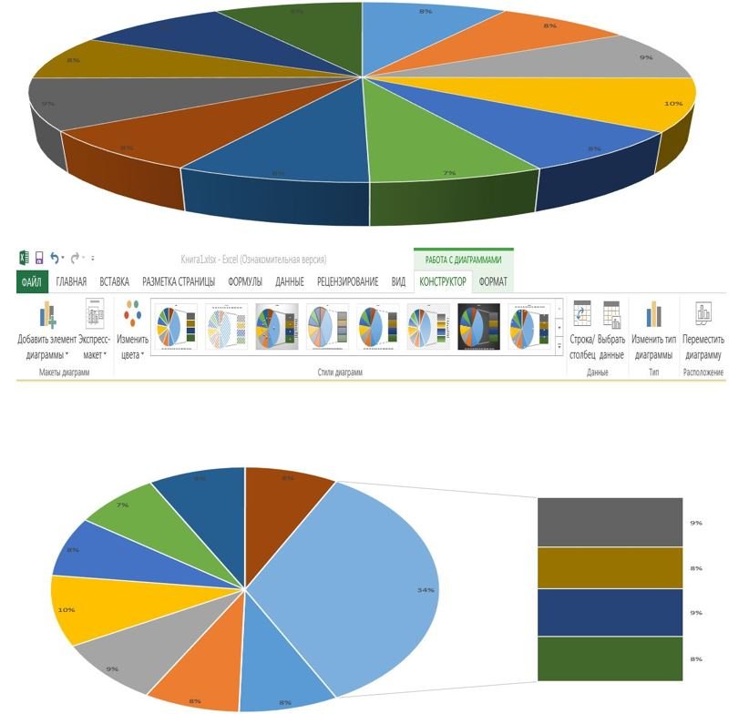 ![]() Какие визуальные изменения произойдут? ?) Будут удалены и оформление, и фильтры, и возможность сортировки ?) Фильтры и возможность сортировки сохранятся, а оформление будет удалено ?) Оформление и фильтры сохранятся, а возможность сортировки будет удалена ?) Оформление сохранится, а фильтры и возможность сортировки будут удалены ?) Оформление и возможность сортировки сохранятся, а фильтры будут удалены Вопрос id:84139 Тема/шкала: Диаграммы Имеется показанная в верхней части снимка круговая диаграмма, которую требуется "разрезать", как показано в нижней части снимка.