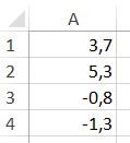 ![]() ?) ПРОПНАЧ ?) ПОДСТАВИТЬ ?) СЖПРОБЕЛЫ ?) ЗНАЧЕН ?) ЛЕВСИМВОЛ Вопрос id:84190 Тема/шкала: Новые возможности Excel 2013 В Excel 2013 в категории "Математические" появилась новая функция РИМСКОЕ. Для чего она используется? ?) Для преобразования римских чисел в экспоненциальный формат ?) Для преобразования римских чисел в текстовый формат ?) Для преобразования римских чисел в денежный формат ?) Для преобразования арабских чисел в римские ?) Для преобразования римских чисел в арабские Вопрос id:84191 Тема/шкала: Формулы и функции В категории математических функций есть функция ЦЕЛОЕ, округляющее заданное число до ближайшего целого. Каковы будут результаты, возвращённые этой функцией при применении к ячейкам A1:A4?