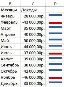 ![]() ?) Спарклайны - Гистограмма ?) Сводная ?) Линейчатая ?) Спарклайны - Выигрыш-проигрыш ?) Гистограмма с группировкой Вопрос id:84219 Тема/шкала: Основы работы В столбце D показанной на снимке таблицы необходимо рассчитать чистый доход для всех месяцев. Соответствующая формула добавлена в ячейку D2.