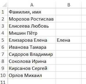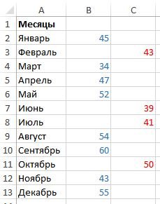 На снимке в столбце B заполнена единственная ячейка B5.