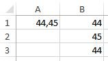 ![]() Относительная ссылка будет преобразована в абсолютную, после чего формула в ячейке D2 будет посредством маркера автозаполнения протянута вниз (последовательно применена) до ячейки D13. Изменятся ли результаты в ячейках D3:D13? ?) Нет, не изменятся ?) Изменятся результаты только в нечётных месяцах ?) При протаскивании формулы в ячейках D3:D13 будет выведено сообщение об ошибке ?) Изменятся результаты только в чётных месяцах ?) Результаты в ячейках D3:D13 станут повторять результат ячейки D2 Вопрос id:84240 Тема/шкала: Формулы и функции К показанному на снимке числу в ячейке A1 последовательно были применены математические функции округления с нулевым числом разрядов. Возвращаемые результаты приведены в ячейках B1:B3.