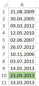 ![]() ?) Консолидация ?) Работа с массивами ?) Промежуточные итоги ?) Сводная таблица ?) Группировка Вопрос id:84243 Тема/шкала: Форматирование и сводные таблицы Имеется длинный столбец с датами. Посредством условного форматирования необходимо выделить в нём текущую дату, как показано на снимке.