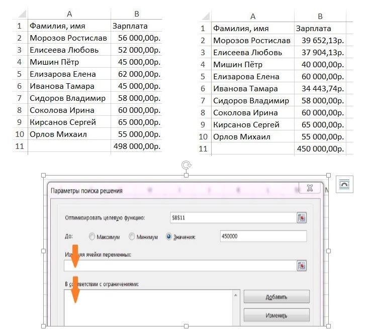 ![]() Какие ячейки результатов должны быть выбраны при записи структуры сценариев? ?) B14:D14 ?) C14 ?) D2:D4 ?) B2:B4 ?) D14 Вопрос id:84245 Тема/шкала: Аналитические задачи После предварительного расчёта зарплаты сотрудников отдела фонд заработной платы был сокращён с 498 до 450 тыс. руб. Нужно уменьшить зарплату верхних пяти сотрудников, установив сотруднику Мишину фиксированную зарплату в 40000 руб, а сотруднице Елизаровой - не менее 60000 руб.