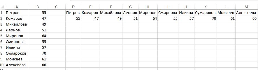 ![]() Укажите правильный вариант заполнения аргументов функции СЦЕПИТЬ. ?) "Здравствуйте! Сегодня" и ТЕКСТ(СЕГОДНЯ; "ДД.ММ.ГГГГ") ?) "Здравствуйте! Сегодня" и СЕГОДНЯ ?) "Здравствуйте! Сегодня" и ТЕКСТ(СЕГОДНЯ) ?) "Здравствуйте! Сегодня" и СЕГОДНЯ() ?) "Здравствуйте! Сегодня" и ТЕКСТ(СЕГОДНЯ(); "ДД.ММ.ГГГГ") Вопрос id:84250 Тема/шкала: Формулы и функции Для транспонирования (взаимной замены столбцов и строк) показанного на снимке простейшего массива A1:B10 была использована встроенная функция работы с массивами ТРАНСП.