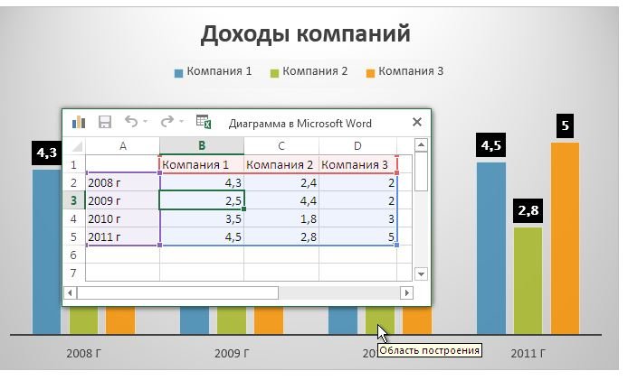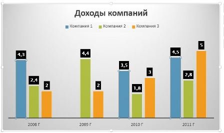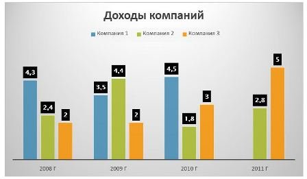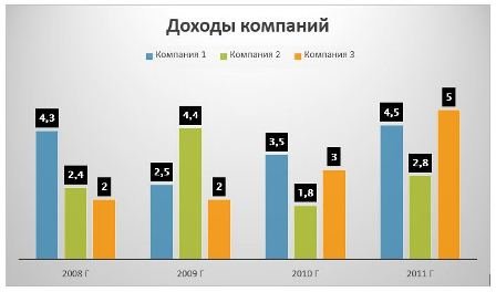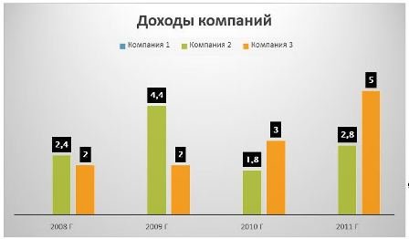Список вопросов базы знанийРабота в Microsoft Word 2013Вопрос id:84315 Тема/шкала: Работа с графическими элементами, таблицами и др. в Word 2013 Какой вид будет иметь диаграмма, если удалить значение выделенной зеленым ячейки (доход Компании 1 за 2009 год)? ![]() ?) Нет верного ответа ?) ![]() ?) ![]() ?) ![]() ?) ![]() Вопрос id:84316 Тема/шкала: Интерфейс Word 2013. Использование клавиш и их комбинаций в Word 2013 Как можно изменить цветовую гамму элементов интерфейса Word 2012 (см. пример на рисунке)?