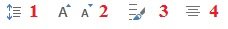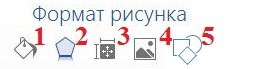 Какой из перечисленных инструментов используется для сортировки списка? ![]() ?) Инструмент 1 ?) Инструмент 2 ?) Инструмент 3 ?) Инструмент 4 ?) Нет верного ответа Вопрос id:84350 Тема/шкала: Работа с графическими элементами, таблицами и др. в Word 2013 Каким инструментом можно добавить следующие объекты в документ Word 2013? ![]() ?) Фигуры ?) Объект SmartArt ?) WordArt ?) Клипарт ?) Буквица Вопрос id:84351 Тема/шкала: Интерфейс Word 2013. Использование клавиш и их комбинаций в Word 2013 Какая клавиша-модификатор вызывает команды с Ленты и Панели быстрого доступа? ?) Shift ?) Esc ?) Ctrl ?) Alt ?) F9 Вопрос id:84352 Тема/шкала: Интерфейс Word 2013. Использование клавиш и их комбинаций в Word 2013 Какими двумя предложенными способами можно изменить расстояние от поля до абзаца? ?) Передвинуть соответствующий ползунок на линейке ?) В меню "Шрифт" выставить интервал ?) На вкладке "Вид" изменить при помощи кнопок Увеличить/Уменьшить отступ ?) Выставить необходимое значение в меню "Абзац" ?) На вкладке "Разметка страницы" настроить поля документа Вопрос id:84353 Тема/шкала: Нововведения в Word 2013 Какая из следующих кнопок отвечает за различные эффекты, применяемые к рисунку? ![]() ?) 5 ?) 2 ?) 3 ?) 4 ?) 1 Вопрос id:84354 Тема/шкала: Печать, рецензирование и другие возможности Word 2013 В каком формате Word 2013 хранит созданные и восстановленные файлы для автоматического восстановления?