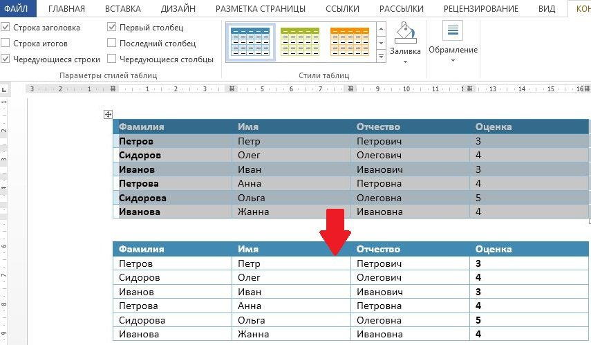 ![]() ?) Использован инструмент "Редактировать" ?) Использован инструмент "Изменить фон" ?) Данный результат невозможно получить без применения специальных программ редактирования изображений ?) Использован инструмент "Замостить" ?) Использован инструмент "Изменить" Вопрос id:84391 Тема/шкала: Печать, рецензирование и другие возможности Word 2013 Что называется "лентой" в Word 2013? ?) Буфер обмена ?) Набор вкладок с командами ?) Набор тем и стилей ?) Перечень последних изменений в документе ?) Набор папок для доступа к определенным файлам Вопрос id:84392 Тема/шкала: Работа с графическими элементами, таблицами и др. в Word 2013 Какие два параметра стилей таблиц необходимо оставить выделенными (помеченными галочкой), чтобы таблица приняла вид нижней?