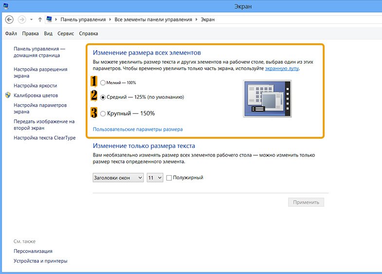 ![]() В какой области рабочего стола находится показанная вкладка контекстного меню? ?) Кпопка "Пуск" ?) Чудо-кнопка "Параметры" -> "Изменение параметров компьютера" -> "Компьютер и устройства" -> "Экран" ?) Панель задач ?) Чудо-кнопка "Пуск" ?) Левая боковая панель Вопрос id:84463 Вам нужно поменять dpi для экрана в Windows(сокращение для англ. dots per inch, количество точек на линейный дюйм). Сделать это можно в окне, представленном на снимке.