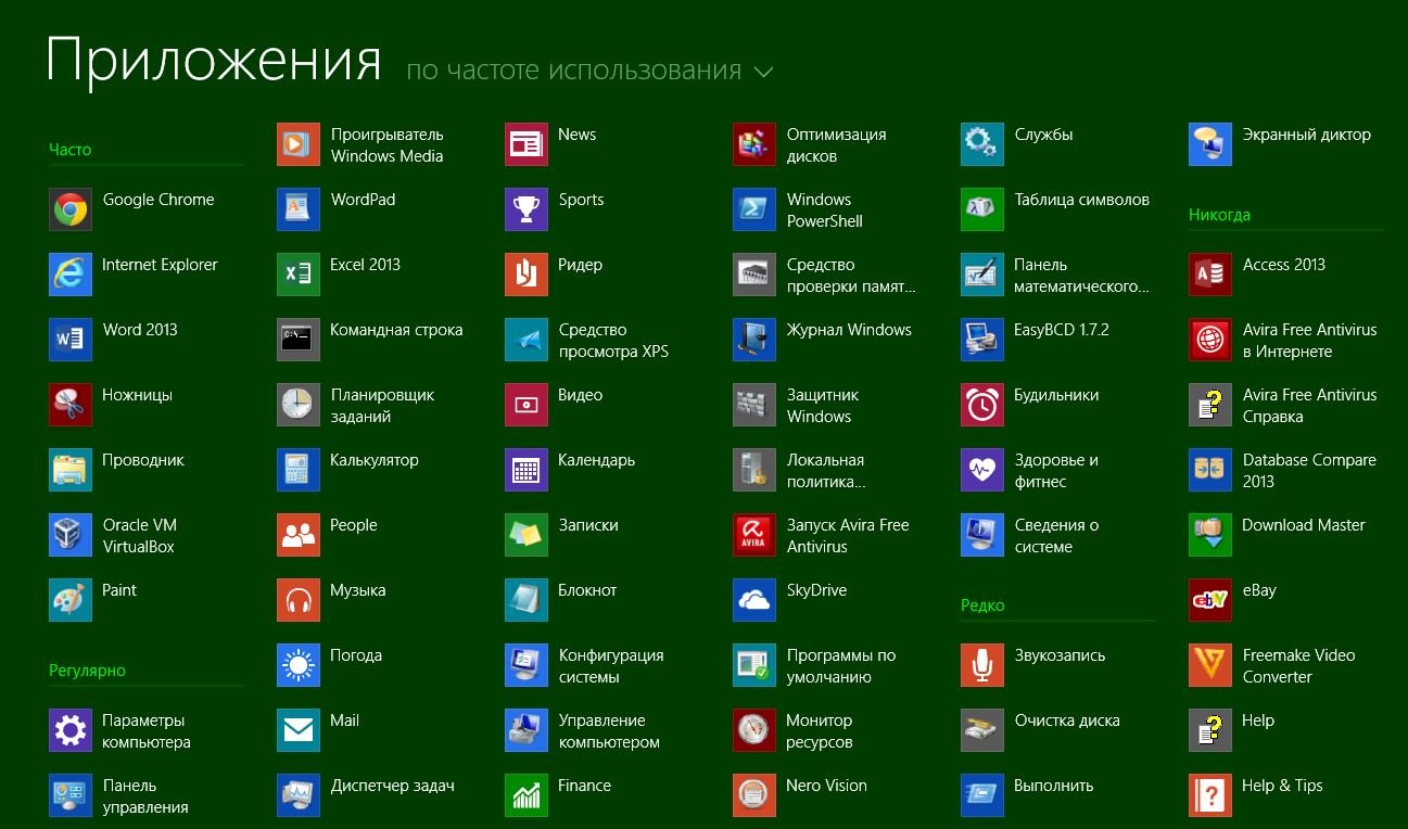 ![]() Какая именно? ?) Журнал приложений ?) Подробности ?) Службы ?) Производительность ?) Процессы Вопрос id:84495 На снимке отображено нововведение версии Windows 8.1: как видно, приложения отсортированы по частоте использования.
