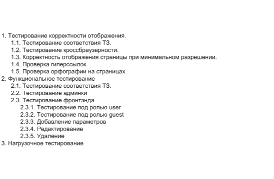 1. на выходе формируется 2 реестра заявок; 2. в реестр№1 попадают заявки с суммой больше, либо равной 500 000 рублей; 3. в реестр№2 попадают заявки с суммой меньше 500 000 рублей; 4. сумма по заявке не может быть равной 0. Выберите класс эквивалентности допустимых исходных данных для тестирования формирования реестра №1. ?) СуммаЗаявки >= -500 000 ?) СуммаЗаявки >=500 000 ?) СуммаЗаявки >= 499 999 ?) СуммаЗаявки = 500 000 ?) СуммаЗаявки >= 0 Вопрос id:85801 Тема/шкала: Тестирование документации Какие три вида документов из перечисленных подлежат проверке при тестировании документации? ?) Функциональные спецификации ?) Интерактивная справка ?) Отчет о тестировании ?) Содержание проекта ?) Руководство пользователя Вопрос id:85802 Тема/шкала: Разработка тестов Необходимо протестировать класс TMessage, который выводит сообщение об ошибке ввода данных в ответ на поступивший код. Класс TMessage содержит метод GetTextMessage(), который возвращает текст сообщения, соответствующий коду в поле ErrorCode. В противном случае возвращается сообщение об ошибке: "ОШИБКА: Неверный код". В приведенной ниже спецификации тестового случая найдите ошибку. ![]() ?) Не приведен исходный код класса Тmessage ?) Отсутствует описание ожидаемого результата ?) Не приведен исходный код метода GetTextMessage() ?) Не описаны параметры ввода данных ?) Не указан допустимый диапазон вводимых символов Вопрос id:85803 Тема/шкала: Разработка тестов Чем характеризуется разработка тестов при модульном тестировании? ?) Каждый тест разрабатывается один раз и прогоняется на всех модулях одновременно ?) Нет верного ответа ?) Тесты разрабатываются по принципу анализа потока управления ?) Тесты разрабатываются для каждого модуля отдельно ?) Каждый тест разрабатывается один раз и прогоняется на всех модулях последовательно Вопрос id:85804 Тема/шкала: Разработка тестов Выберите верное утверждение из предложенных. ?) План тестирования представляет собой набор тест-кейсов ?) В одном тест-кейсе должно быть только одно предусловие ?) Тест-кейс и баг репорт являются взаимозаменяемыми документами проекта ?) Имя тест-кейса неуникально для проекта ?) Тест-кейс - это артефакт, описывающий совокупность шагов, конкретных условий и параметров, необходимых для проверки реализации тестируемой функции или её части. Вопрос id:85805 Тема/шкала: Разработка тестов Вы выполняете юзабилити тестирование web-сайта с поддержкой арабского и персидского языков. Где на страницах должно быть размещено название сайта и логотип? ?) Левый верхний угол ?) Зависит от дизайна сайта ?) Левый или правый нижний угол ?) Для web-сайтов с поддержкой арабского и персидского языков логотип не делается ?) Правый верхний угол Вопрос id:85806 Тема/шкала: Основные определения Как нужно организовать процесс интеграционного тестирования программного продукта, состоящего из нескольких модулей? ?) Собрать модули в единую систему ?) Объединить модули в пары, затем в большие блоки, затем в единую систему ?) Каждый модуль передать на тестирование отдельной команде тестировщиков ?) Провести тестирование самых значимых модулей ?) Провести последовательно тестирование всех модулей Вопрос id:85807 Тема/шкала: Разработка тестов Необходимо выполнить тестирование кода web-страницы, фрагмент которого приведен ниже. Укажите возможную ошибку при автоматической проверке кода валидатором.