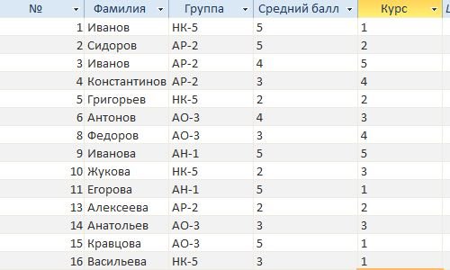 ![]() ?) Нет верного ответа ?) DELETE Ученики.[№], Ученики.Фамилия, Ученики.Группа, Ученики.[Средний балл], Ученики.Курс FROM Ученики WHERE (((Ученики.[Средний балл])=2)); ?) DELETE FROM Ученики FIELDS Ученики.[№], Ученики.Фамилия, Ученики.Группа, Ученики.[Средний балл], Ученики.Курс WHERE (((Ученики.[Средний балл])=2)); ?) DELETE Ученики.[№], Ученики.Фамилия, Ученики.Группа, Ученики.[Средний балл], Ученики.Курс WHERE (((Ученики.[Средний балл])=2)) FROM Ученики; ?) DELETE Ученики FROM Ученики WHERE ((([Средний балл])=2)) Вопрос id:85956 Тема/шкала: Работа с запросами Имеется таблица клиентов с указанием их места проживания (указывается только город). Какое условие необходимо задать в запросе для вывода всех клиентов за исключением москвичей? ?) All But "Москва" ?) Remove("Москва") ?) Not "Москва" ?) In "Москва" ?) Del("Москва") Вопрос id:85957 Тема/шкала: Работа с таблицами В каком пункте меню из перечисленных можно настроить внешний вид таблиц (эффекты сетки и ячеек, шрифт по умолчанию)? ?) Создание ->Таблица -> Параметры ?) Файл -> Параметры -> Таблица ?) Работа с таблицами -> Таблица -> Настройки ?) Файл -> Параметры -> Внешний вид -> Таблица ?) Работа с таблицами -> Параметры -> Внешний вид Вопрос id:85958 Тема/шкала: Основы и нововведения MS Access 2010 Укажите, каких типов межтабличных связей нет в Access 2010? ?) Два к нескольким ?) Многие к одному ?) Один ко многим ?) Один к одному ?) Многие ко многим Вопрос id:85959 Тема/шкала: Работа с запросами Создана таблица: ![]() Запрос к таблице: SELECT Ученики.[Фамилия], Ученики.[Группа], Ученики.[Средний балл], Ученики.Курс FROM Ученики WHERE (((Ученики.[Средний балл]) < = 3) AND ((Ученики.Курс) < 4)); Как будет выглядеть результат выполнения запроса? ?) ![]() ?) ![]() ?) ![]() ?) ![]() ?) ![]() |