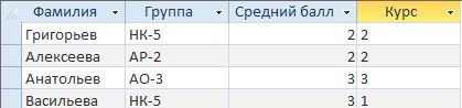Необходимо получить средний балл по каждой из групп. ![]() Какой вариант создания запроса в режиме SQL верный? ?) SELECT DISTINCTROW Ученики.Группа, Avg(Ученики.[Средний балл]) AS [Средний балл] ?) SELECT Ученики.Группа, (Ученики.[Средний балл]) AS [Средний балл] FROM Ученики GROUP BY Ученики.Группа; ?) INSERT DISTINCTROW Ученики.Группа, Avg(Ученики.[Средний балл]) AS [Средний балл] FROM Ученики GROUP BY Ученики.Группа; ?) SELECT DISTINCTROW Ученики.Группа, Avg(Ученики.[Средний балл]) AS [Средний балл] FROM Ученики GROUP BY Ученики.Группа; ?) SELECT DISTINCTROW Ученики.Группа, Sum(Ученики.[Средний балл]) AS [Средний балл] FROM Ученики GROUP BY Ученики.Группа; Вопрос id:85944 Тема/шкала: Интерфейс MS Access 2010 Какая кнопка из перечисленных означает "Макрос"? ![]() ?) 3 ?) 2 ?) 4 ?) 5 ?) 1 Вопрос id:85945 Тема/шкала: Основы и нововведения MS Access 2010 При помощи чего в Access 2010 можно наглядно отобразить сравниваемые значения или определить тенденции?