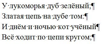 ![]() ?) 5 ?) 1 ?) 3 ?) 4 ?) 2 Вопрос id:86886 Тема/шкала: Инструменты и объекты Microsoft Word Что из перечисленного ниже является нововведением при работе с рисунками в Word 2010? ?) Возможность повернуть рисунок ?) Возможность воспользоваться художественными эффектами (текстуры, акварель и т.п.) ?) Возможность обрезать часть рисунка ?) Возможность преобразовать рисунок в черно-белый ?) Возможность изменения яркости и контрастности рисунка Вопрос id:86887 Тема/шкала: Инструменты и объекты Microsoft Word Что означает символ, который отображается в конце каждой строки в тексте снизу? Как его можно скрыть, ничего не удаляя?