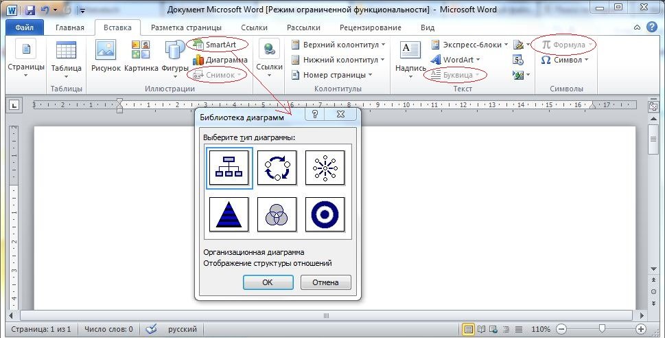 ![]() ?) Колонтитул ?) Индекс ?) WordArt ?) Выравнивание ?) SmartArt Вопрос id:86900 Тема/шкала: Интерфейс Microsoft Word Что такое "Представление Microsoft Office Backstage"? И где оно находится? ?) Особый вид предварительного просмотра документа. Вкладка Файл ?) Набор команд, используемых для работы с документом. Вкладка Файл ?) Набор команд, используемых для работы в документе. Лента ?) Особенный стиль документа. Вкладка Главная ?) Особенный вид представления документа. Вкладка Вид Вопрос id:86901 Тема/шкала: Форматирование Каким способом из перечисленных можно сделать автоматический пропуск места перед абзацем? ?) Добавить несколько Enter-ов перед абзацем ?) Добавить несколько строк перед абзацем ?) Изменить стиль шрифта ?) Изменить параметры страницы ?) Использовать раздел "Интервал" Вопрос id:86902 Тема/шкала: Печать, размещение в Интернет и другие функции Что необходимо сделать, чтобы в случае, представленном на рисунке, были доступны все указанные функции приложения Word 2010? ?) Необходимо преобразовать документ при помощи кнопки Файл - Сведения - Преобразовать ?) Необходимо обратиться в техническую поддержку ?) Необходимо обратиться к администратору системы ?) Это невозможно сделать в режиме ограниченной функциональности ?) Необходимо создать новый документ в формате *.docx и туда скопировать текущий документ полностью Вопрос id:86903 Тема/шкала: Основные операции Каким образом можно поменять цвет окна в Word 2010? ![]() ?) Необходимо нажать "Разметка страницы" - "Фон страницы" - "Цвет страницы" и выбрать необходимый цвет ?) Необходимо нажать "Файл" - "Параметры" и выбрать необходимую цветовую схему. ?) Данные изменения не могут быть осуществлены средствами Word 2010 (необходимо проводить средствами операционной системы) ?) Данная настройка содержится в меню "Вид" ?) Необходимо нажать на кнопку "Сменить цвет темы" на панели быстрого доступа Вопрос id:86904 Тема/шкала: Основные операции Какая комбинация клавиш используется для возврата последнего отмененного действия (повтор операции, команда Redo)? ?) Ctrl + Z ?) Ctrl + X ?) Ctrl + Y ?) Ctrl + C ?) Ctrl + V Вопрос id:86905 Тема/шкала: Основные операции Какой размер шрифта в Word 2010 невозможно применить к тексту? ?) 13 пт ?) 13,5 пт ?) 13,6 пт ?) 1 ?) 12 пт Вопрос id:86906 Тема/шкала: Основные операции Каким образом Word предупреждает о наличии орфографических или грамматических ошибок? ?) При помощи всплывающих сообщений ?) При помощи подчеркивания их волнистой красной или зеленой линией. ?) При помощи подчеркивания прямой красной или зеленой линией ?) При помощи всплывающих сообщений и подчеркивания их прямой линией. ?) При помощи подчеркивания их волнистой красной, зеленой или синей линией. Вопрос id:86907 Тема/шкала: Интерфейс Microsoft Word Можно ли создать вкладку на ленте с собственным набором команд (подобно вкладкам Файл, Главная, Вставка...)? ?) Встроенными средствами Word данное сделать невозможно. Необходимо дополнительно программное обеспечение ?) Да. Можно настроить в параметрах Word ?) Нет. Никакими средствами сделать невозможно ?) Да, необходимо перейти в режим разработки ?) Необходимо установить надстройку Вопрос id:86908 Тема/шкала: Печать, размещение в Интернет и другие функции Какие из утверждений являются верными?(выберите все правильные варианты) ?) В Word 2010 отсутствует функция удаления фона изображения ?) В таблице Word 2010 можно производить простые операции ?) В Word 2010 невозможно создать диаграмму ?) В режиме ограни