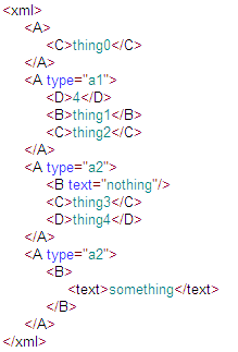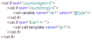 Список вопросов базы знанийЯзык преобразований XSLВопрос id:90681 Тема/шкала: Выражения, шаблоны и преобразование с условиями в XSLT Каким будет результат выполнения представленного фрагмента кода? ![]() ?) Шаблон применяется, если у текущего элемента значение дочернего элемента amount меньше 25 ?) Копирование значение атрибута "amount" в результирующий документ, если значение атрибута amount меньше 25 ?) Шаблон применяется на первые 24 элемента с атрибутом "amount" ?) Шаблон применяется, если количество атрибутов у текущего элемента меньше 25 ?) Шаблон применяется, если значение атрибута amount меньше 25 Вопрос id:90682 Тема/шкала: Выражения, шаблоны и преобразование с условиями в XSLT Каким будет результат применения инструкции <xsl:call-template name="item"/> к элементу если шаблон определен следующим образом: ![]() ?) * ?) **C ?) AB* ?) C** ?) *AB Вопрос id:90683 Тема/шкала: Выражения, шаблоны и преобразование с условиями в XSLT Какие значения для приведенного XML документа соответствуют XPath шаблону "thing/text()"? ![]() ?) text1, text2, text4 ?) text1, text4 ?) text1, <node>text2</node>, text4 ?) text1, дочерний элемент <node>, text4 ?) thing, thing Вопрос id:90684 Тема/шкала: Применение XSL Какой элемент указывает расположение обрабатываемого элемента в дереве документа XML? ?) <target-element> ?) <element> ?) <rule> ?) <children> ?) <position> Вопрос id:90685 Тема/шкала: Свойства, методы и вывод в XSLT Каким образом исправить ошибку, содержащуюся в приведенном фрагменте кода? ![]() ?) Элемент xsl:otherwise должен иметь атрибут test ?) Элемент xsl:call-template должен быть включен в блок xsl:if ?) Элемент xsl:call-template нужно заменить на xsl:apply-templates ?) Элемент xsl:otherwise должен быть потомком только элемента xsl:choose ?) Элемент xsl:otherwise должен быть включен в блок xsl:if Вопрос id:90686 Тема/шкала: Выражения, шаблоны и преобразование с условиями в XSLT При каком значении XPath значение выборки для данного XML документа НЕ будет Tom? ![]() ?) //employee/name[count(family)=0]/given ?) //employee/name[family='']/given ?) //employee/name[not(boolean(family))]/given ?) //employee[position()=2]/name/given ?) //employee[position()!=1 and position()!=last()]/name/given Вопрос id:90687 Тема/шкала: Выражения, шаблоны и преобразование с условиями в XSLT Необходимо выбрать все элементы item, в которых содержится widget с type="c". Какие комбинации выборки возможно указать для решения поставленной задачи? ![]() ?) item/widget[@type=’c’] ?) //item(widget/type=’c’) ?) item[count(widget[@type=’c’])!=0] ?) item[widget/@type=’c’] ?) item/widget(@type=’c’) Вопрос id:90688 Тема/шкала: Применение XSL Какой элемент используется для обработки всех потомков текущего элемента? ?) <select_elements> ?) <element> ?) <children> ?) <rule> ?) <target-element> Вопрос id:90689 Тема/шкала: Свойства, методы и вывод в XSLT В каком случае будет вызван шаблон tpl1, представленный в данном фрагменте кода? ![]() ?) Если в текущем элементе есть хотя бы один элемент widget, хотя бы один элемент thing и атрибут type ?) Шаблон не вызовется, поскольку условие никогда не будет выполнено ?) Если у элементов widget и thing атрибут count имеет значение, больше 0 ?) Если в текущем элементе атрибут type непустой и атрибуты widget и thing указаны ?) Шаблон не вызовется, поскольку код содержит структурную ошибку Вопрос id:90690 Тема/шкала: Свойства, методы и вывод в XSLT Какие 2 действия необходимо предпринять, чтобы исправить ошибку, содержащуюся в приведенном фрагменте кода? ![]() ?) Текст "type=" должен быть вынесен за блок xsl:choose ?) Элемент xsl:otherwise не может быть прямым потомком xsl:choose ?) Элемент xsl:choose должен содержать хотя бы один элемент xsl:when ?) Элемент xsl:choose должен иметь атрибут test ?) Элемент xsl:otherwise должен находиться вне блока xsl:choose Вопрос id:90691 Тема/шкала: Свойства, методы
