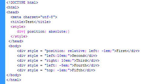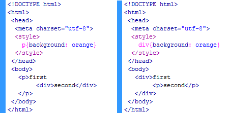 ![]() (CSS2.1 - CSS3, HTML 5) ?) 100px ?) 250px ?) 300px ?) 150px ?) 200px Вопрос id:90772 Тема/шкала: Свойства текста и шрифт Какие значения НЕ может принимать свойство font-style? ?) cursive ?) bold ?) normal ?) oblique ?) inherit Вопрос id:90773 Тема/шкала: Способы применения CSS. Принципы каскадирования. Переопределение и наследование стилей. В чем состоит отличие между следующими документами: ![]() (CSS2.1 - CSS3) ?) В первом варианте свойство селектора div не наследуется элементом <p>, а во втором вступает правило наследования, поэтому оба элемента будут иметь оранжевый фон ?) Оба варианта кода дают идентичный результат ?) В первом варианте наследование имеет место (оба элемента на оранжевом фоне), а во втором блочный элемент div не наследует свойства элемента p ?) Согласно принципам каскадирования в первом варианте свойство селектора div будет влиять на содержимое элемента <p>, так же как и во втором (свойство селектора p будет воздействовать и на элемент div) ?) В первом варианте действует правило наследования свойств, во втором синтаксическая ошибка Вопрос id:90774 Тема/шкала: Работа с блочными элементами