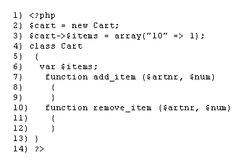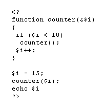 предыдущим запросом INSERT, с использованием данного соединения для таблицы MySQL. Какая из перечисленных функций позволит решить поставленную задачу? ?) mysql_last_id() ?) mysql_stat() ?) mysql_last_insert_id() ?) mysql_insert_id() ?) mysql_list_id() Вопрос id:91581 Тема/шкала: Повторное использование кода и создание функций Выберите существующие ограничения имен функций. ?) Функция должна иметь имя, не совпадающее с именами других функций ?) Имя функции может содержать только буквы, цифры и символы подчеркивания ?) Имя функции не может начинаться с цифры ?) Имя функции не может совпадать с именем переменной ?) Имя функции не может начинаться с символа подчеркивания Вопрос id:91582 Тема/шкала: Работа с базами данных Что из перечисленного возвращает функция OCINumCols? ?) Количество результирующих столбцов в операторе ?) Количество строк в таблице ?) Количество результирующих строк в операторе ?) Количество столбцов в таблице ?) Величину табличного пространства Вопрос id:91583 Тема/шкала: Конфигурация РНР Для работы с БД Oracle Вам необходимо чтобы библиотека php_oci8 была загружена в память. При помощи какой функции Вы можете загрузить эту библиотеку во время выполнения сценария? ?) load_dll() ?) dl() ?) so() ?) load_dl() ?) load_so() Вопрос id:91584 Тема/шкала: Строки и регулярные выражения Какой символ, находясь в регулярном выражении первым в секции задания подмножества символов (character class), рассматривается как символ отрицания? ?) @ ?) – ?) ^ ?) \ ?) ! Вопрос id:91585 Тема/шкала: Функции для работы с изображениями Вы нарисовали прямую линию из точки (0,0) в точку (50,50) с помощью следующего скрипта: Обьясните полученный результат: ![]() ?) Началом координат является верхний левый угол изображения ?) Началом координат является верхний правый угол изображения ?) Началом координат является нижний правый угол изображения ?) Началом координат является центр изображения ?) Началом координат является нижний левый угол изображения Вопрос id:91586 Тема/шкала: Объектно-ориентированное программирование При помощи какого ключевого слова описывается дочерний класс (класс-наследник)? ?) successor ?) owner ?) extends ?) parent ?) children Вопрос id:91587 Тема/шкала: Объектно-ориентированное программирование Какую ошибку содержит сценарий, приведенный на рисунке? ![]() ?) Переменные экземпляра класса необходимо инициализировать в объявлении класса, а не в конструкторе ?) В РНР не существует операции -> ?) В сценарии используются методы и атрибута класса до объявления самого класса, что недопустимо в РНР ?) Имя конструктора класса (в данном случае функции first()) должно начинаться с ~ ?) Перед использованием переменных экземпляра класса необходимо создать экземпляр класса Вопрос id:91588 Тема/шкала: Функции для работы с изображениями Какие 2 функции возможно использовать для генерации следующего изображения: ![]() ?) ImageRectangle($im,0,0,50,50, ImageColorAllocate ($im, 0, 255, 0)); ?) ImageFilledRectangle($im,0,0,50,50,ImageColorAllocate ($im, 0, 255, 0)); ?) ImageLine($im, 0, 0, 50, 50, ImageColorAllocate ($im, 0, 255, 0)); ?) ImageBox($im,0,0,50,50, ImageColorAllocate ($im, 0, 255, 0)); ?) ImageFill($im, 0, 0, ImageColorAllocate ($im, 0, 255, 0)); Вопрос id:91589 Тема/шкала: Повторное использование кода и создание функций В результате выполнения следующего кода переменная $number принимает некоторое значение. ![]() Почему? ?) Переменная передается в функцию add_one() по значению; инкремент применяется к локальной переменной $number (переменной области видимости функции) и не действует на $number, объявленную вне функции ?) Функция add_one() возвращает значение инкременти