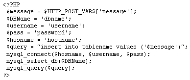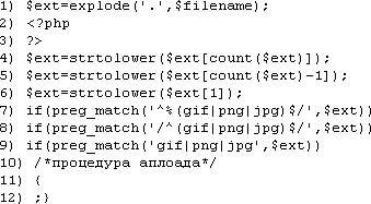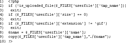 ?) global $str; ?) static $i; ?) local $str; ?) global $i; ?) static $str; Вопрос id:91570 Тема/шкала: Загрузка клиентом файлов на сервер Вы пересылаете одновременно 2 файла из одной формы. Листинг кода формы приведен на рисунке. Каким образом возможно получить список имён подгруженных файлов, используя массив $_FILES? ![]() ?) print_r($_FILES) ?) while(list($arr,$name)=each($_FILES['userfile']['name'])){print $name;} ?) foreach($_FILES as $i){print $i['userfile']['name'];} ?) print_r($_FILES['userfile']['name']);$i++){print $_FILES[$i];} ?) foreach($_FILES['userfile'] as $i){print $i['name'];} Вопрос id:91571 Тема/шкала: Работа с базами данных В сценарии, фрагмент которого изображен на рисунке, производится выборка данных из одноименных столбцов 2 разных таблиц. Укажите верный способ получения значения столбца colA таблицы tbl2. ![]() ?) $row[2] ?) $row["colA"] ?) $row["tbl2"]["colA"] ?) $row[1] ?) $row["tbl2.colA"] Вопрос id:91572 Тема/шкала: Функции для работы с изображениями Выберите верный порядок строк в сценарии: для генерации рисунка: ![]() ?) 4,3,5,6,2,1,7 ?) 5,2,6,4,7,1,3 ?) 1,3,4,2,5,7,6 ?) 2,3,6,1,4,5,7 ?) 1,7,6,3,4,5,2 Вопрос id:91573 Тема/шкала: Базовый синтаксис Каков результат выполнения данного PHP-сценария? ![]() ?) col = 10 $num = 1 ?) col = col $num = 6 ?) 6col = col $num = 1 ?) Сообщение об ошибке ?) 6col = 10 $num = 6 Вопрос id:91574 Тема/шкала: Конфигурация РНР Сценарий, фрагмент которого приведен ниже, используется в гостевой книге. Сообщение пользователя передается методом POST и присваивается переменной $message. В некоторых случаях данный сценарий выдает ошибку. Какой параметр конфигурационного файла следует установить в On? ![]() ?) magic_quotes ?) register_globals_gpc ?) magic_quotes_runtime ?) magic_quotes_gpc ?) register_globals Вопрос id:91575 Тема/шкала: Конфигурация РНР Сценарий, обрабатывающий удаленную загрузку файлов, неправильно обрабатывает большие файлы. Выберите опцию конфигурационного файла РНР, из-за некорректного значения которой возможно возникновение данной проблемы. ?) post_max_size ?) max_execution_time ?) memory_limit ?) max_file_size ?) register_globals Вопрос id:91576 Тема/шкала: Строки и регулярные выражения Необходимо организовать проверку расширений загружаемых файлов. К загрузке допускаются файлы с расширениями gif png jpg. Выберите верный порядок строк в сценарии для решения этой задачи. ![]() ?) 2, 1, 4, 8, 11, 10, 12, 3 ?) 2, 1, 5, 8, 11, 10, 12, 3 ?) 2, 1, 6, 7, 11, 10, 12, 3 ?) 2, 1, 5, 7, 11, 10, 12, 3 ?) 2, 1, 5, 9, 11, 10, 12, 3 Вопрос id:91577 Тема/шкала: Повторное использование кода и создание функций Сценарий, фрагмент которого изображен на рисунке, имеет проблемы с безопасностью (при помощи запроса GET с указанием переменной $evil_var можно выполнить не предусмотренное разработчиком действие). Какую опцию необходимо изменить в файле конфигурации для решения данной проблемы? ![]() ?) enable_get ?) get_array ?) register_globals ?) magic_quotes ?) user_variables Вопрос id:91578 Тема/шкала: Работа с базами данных Выберите функцию PHP, которая возвращает число записей, полученных в результате запроса к базе данных сервера MySQL? ?) cols() ?) mysql_records() ?) rows() ?) mysql_quantity() ?) mysql_num_rows() Вопрос id:91579 Тема/шкала: Работа с базами данных Выберите строку для подстановки в приведенный сценарий: ![]() ?) create_db($dbname, $def) ?) dbase_add_table($dbname, $def) ?) dbase_create_db($dbname, $def) ?) dbase_create($dbname, $def) ?) dbase_add_db($dbname, $def) Вопрос id:91580 Тема/шкала: Работа с базами данных Необходимо определить ID, сгенерированный для столбца AUTO_INCREMENT