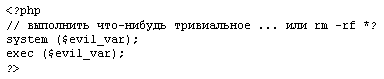 $a==NULL, если... ?) Ей присвоено значение null ?) Ей присвоено значение false ?) После присвоения ей числа 10 к ней был применён unset() ?) Ей присвоено значение 0 ?) Ей присвоено значение "" (пустая строка) Вопрос id:91605 Тема/шкала: Работа с базами данных При помощи какой функции воможно установить соединение с БД Oracle? ?) OCI_p_connect ?) Ora_Logon ?) Ora_p_connect ?) OCIConnect ?) Ora_connect Вопрос id:91606 Тема/шкала: Строки и регулярные выражения Необходимо вывести значение атрибута класса. Выберите строку с верным синтаксисом разбора переменных. ?) echo "Переменная имеет имя - $obj->values[3]->name"; ?) echo "Переменная имеет имя - { $obj->values[3]->name }";?) echo "Переменная имеет имя - %$obj->values[3]->name%"; ?) echo ‘Переменная имеет имя - {$obj->values[3]->name}’;?) echo "Переменная имеет имя - {$obj->values[3]->name}";Вопрос id:91607 Тема/шкала: Конфигурация РНР Поддержку чего включает конфигурационная опция asp_tags? ?) Функций VBScript ?) Полную поддержку ASP ?) Тэгов <% %> ?) Тэгов <? ?> ?) Функций ASP Вопрос id:91608 Тема/шкала: Объектно-ориентированное программирование Каким способом возможно осуществить непрямой вызов метода В() объекта $А? ?) call_user_method("B", $A); ?) $A->$B; ?) get_class_methods($A, "B"); ?) call_user_func(array(&$A, "B")); ?) $A->B; Вопрос id:91609 Тема/шкала: Базовый синтаксис Каков результат выполнения данного PHP-сценария? ![]() ?) 33.3 ?) 18.3 Little Piggies 15 Small Pigs ?) 3.31515 ?) 8.3 ?) Сообщение об ошибке Вопрос id:91610 Тема/шкала: Работа с базами данных Сценарий, приведенный на рисунке, должен вывести на экран значение поля data десятой записи таблицы test.dbf. Выберите определение ошибки, из-за которой сценарий выполняется неверно. ![]() ?) База данных расположена в каталоге tmp, что недопустимо ?) Результат, возвращаемый функцией dbase_get_record(), не является ассоциативным массивом ?) База данных открыта в режиме write-only ?) Создание файла базы данных должно происходить в том же сценарии, что и чтение из него ?) Для подобных операций необходимо открывать файл в режиме чтение-запись Вопрос id:91611 Тема/шкала: Объектно-ориентированное программирование ![]() На рисунке а) показано, что класс С унаследован от класса В, который, в свою очередь, унаследован от класса А. На рисунке b) показано что классы В и С унаследованы от класса А. На рисунке с) показано, что класс С унаследован от классов А и В. Какие способы наследования из изображенных на рисунках допустимы в РНР4? ?) a, b ?) b, c ?) a, b, c ?) a, c ?) c Вопрос id:91612 Тема/шкала: Функции файловой системы Необходимо переместить, либо скопировать файл, загруженный удаленным пользователем. При этом требуется обеспечить безопасность (возможность копирования именно загруженного файла, а не /etc/password), и обеспечить полноценную работу сценария в безопасном режиме РНР (safe mode). Какой из приведенных ниже функций следует воспользоваться для решения поставленной задачи? ?) file_copy() ?) move_file() ?) copy() ?) copy_uploaded_file() ?) move_uploaded_file() |