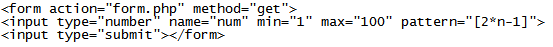 Укажите все возможные варианты. ?) metadata ?) default ?) none ?) auto ?) full Вопрос id:93300 Тема/шкала: Формы Требуется создать форму на сайте для ввода чисел до 100 с ограничением: ввод только нечетных чисел.
