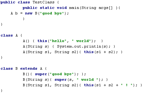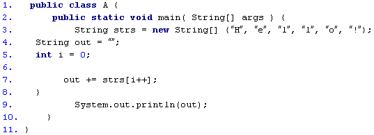 Список вопросов базы знанийПрограммирование на Java 1.5Вопрос id:93593 Тема/шкала: Объектно-ориентированное программирование Необходимо запустить программу, находящуюся в классе my.util.A.class в директории с:/temp/my/util. Какой из приведенных фрагментов кода позволит решить поставленную задачу? ?) c:/temp/my> java util.A ?) c:/temp/my/util> java A ?) c:/temp/my/util> java my.util.A ?) с:/temp> java my.util.A ?) c:/temp> java my.util.A.class Вопрос id:93594 Тема/шкала: Операции с данными Какие из перечисленных объявлений дробного литерала НЕ являются правильными? ?) double d = 1e0; ?) double d = 1.; ?) double d = .1e-1; ?) double d = .1; ?) double d = 1e; Вопрос id:93595 Тема/шкала: Управляющие конструкции Необходимо сгенерировать исключение MyException. Какой из перечисленных фрагментов кода позволяет решить поставленную задачу? ![]() ?) throws new MyException(“message”); ?) new MyException(“message”); ?) new MyException(); ?) throw new MyException(“message”); ?) throw MyException(“message”); Вопрос id:93596 Тема/шкала: Среда Java Runtime Какой метод необходимо вызвать у объекта класса ObjectOutputStream в приведенном ниже фрагменте кода, чтобы указать, что сеанс сериализации завершен, и получить возможность передавать измененные объекты? ![]() ?) oos.reset(); ?) oos.flush(); ?) oos.close(); ?) oos.drain(); ?) oos.putFields(); Вопрос id:93597 Тема/шкала: Операции с данными Каким будет результат выполнения приведенного фрагмента кода? ![]() ?) -4-44 ?) -44-4 ?) 4-4-4 ?) 4-44 ?) -4-4-4 Вопрос id:93598 Тема/шкала: Основы программирования Необходимо запустить программу, которая находится в классе my.example.Test. Какой вызов из командной строки позволит решить поставленную задачу? ?) java my.example.Test ?) java Test ?) java my/example/Test ?) java my/example/Test.class ?) java my.example.Test.class Вопрос id:93599 Тема/шкала: Операции с данными Какие из перечисленных слов являются ключевыми? ?) null ?) const ?) true ?) goto ?) false Вопрос id:93600 Тема/шкала: Объектно-ориентированное программирование Какое из перечисленных понятий корректно описывает вид отношений между классами Person и Student? ![]() ?) Композиция ?) Наследование ?) Ассоциация ?) Инкапсуляция ?) Агрегация Вопрос id:93601 Тема/шкала: Операции с данными Каким будет результат выполнения приведенного фрагмента кода? ![]() ?) 12 = 12 1 != 2 ?) Произойдет ошибка компиляции ?) Произойдет ошибка времени выполнения ?) 3 = 12 1 != 2 ?) 1 + 2 = 12 1 != 2 Вопрос id:93602 Тема/шкала: Потоки Какое из утверждений относительно приведенного фрагмента кода является верным? ![]() ?) Ничего не будет выведено на экран в результате выполнения ?) Возникнет ошибка времени выполнения ?) Возникнет ошибка компиляции ?) В результате выполнения будет выведено 012 ?) Код может быть скомпилирован, если объявить класс с модификатором abstract Вопрос id:93603 Тема/шкала: Объектно-ориентированное программирование Какой из перечисленных механизмов ООП обеспечивает сокрытие реализации класса и отделение его внутреннего представления от внешнего (интерфейса)? ?) Полиморфизм ?) Наследование ?) Инкапсуляция ?) Перегрузка ?) Модульность Вопрос id:93604 Тема/шкала: Основы программирования Какая из приведенных утилит позволяет скомпилировать класс? ?) java ?) javacom ?) javacomp ?) javac ?) javadoc Вопрос id:93605 Тема/шкала: Объектно-ориентированное программирование Какой из перечисленных вариантов ответа содержит полный список модификаторов, которые применяются по умолчанию к полям интерфейса? ?) static ?) public final ?) public static final ?) public static ?) public Вопрос id:93606 Тема/шкала: Основы программирования Необходимо запустить программу, которая находится в классе my.example.Test, расположенном в библиотеке lib.jar.Библиотека lib.jar не входит в глобальный classpath. Какой вызов из к