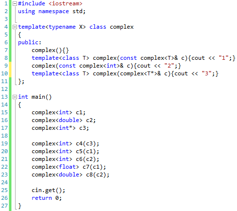 Список вопросов базы знанийПрограммирование на C++Вопрос id:94471 Тема/шкала: Обработка исключений и RTTI. Что выведется в консоль в результате выполнения следующего кода? ![]() (Компилятор Visual Studio C++) ?) Simple ?) void ?) Ничего ?) Произойдет ошибка компиляции ?) class Simple Вопрос id:94472 Тема/шкала: STL. Согласно стандарту C++11 auto_ptr считается устаревшим (deprecated). Какие из следующих интеллектуальных указателей (smart pointers) заменили auto_ptr и теперь входят в состав STL? ?) scoped_ptr ?) unique_ptr ?) weak_ptr ?) intrusive_ptr ?) shared_ptr Вопрос id:94473 Тема/шкала: Базовые конструкции и синтаксис языка. Вам необходимо переработать программу, разработанную на языке С: ![]() Требуется внести в нее изменения, чтобы программа корректно работала на С++. Какой из приведенных фрагментов кода выполнит поставленную задачу? ?) ![]() ?) ![]() ?) ![]() ?) ![]() ?) ![]() Вопрос id:94474 Тема/шкала: Шаблоны. Вам необходимо создать шаблон класса-контейнера для хранения некоторых элементов. Данный шаблон имеет один параметр – ItemType: ![]() Как будет выглядеть объявление метода AddItem, который принимает в качестве параметра объект типа ItemType? ?) ![]() ?) ![]() ?) ![]() ?) ![]() ?) ![]() Вопрос id:94475 Тема/шкала: Средства ООП. Вам необходимо перегрузить для класса Complex оператор +, при этом необходимо, чтобы для оператора сложения сохранялся его обычный смысл, то есть он должен возвращать сумму своих аргументов, но исходные объекты должны оставаться неизмененными. Как может выглядеть сигнатура данного метода? (выберите наиболее правильный вариант) ?) Complex operator+(Complex&) const; ?) Complex& operator+(const Complex&) const; ?) const Complex operator+(Complex) const; ?) const Complex& operator+(const Complex&) const; ?) const Complex operator+(const Complex&) const; Вопрос id:94476 Тема/шкала: Общие вопросы программирования на C++. Посредством каких средств языка С++ можно полностью эмулировать встроенный тип bool? ?) макросы ?) enum ?) class ?) полностью эмулировать bool нельзя ?) typedef Вопрос id:94477 Тема/шкала: Обработка исключений и RTTI. Оператор typeid() возвращает… ?) Ссылку на метакласс ?) Указатель на массив символов (char*), содержащий имя типа ?) Ссылку на тип стандартной библиотеки, называемый type_info ?) Идентификатор класса ?) Идентификатор типа Вопрос id:94478 Тема/шкала: Вопросы эффективности кода. Почему применение виртуальных функций не оправдано там, где не требуется динамическое полиморфное поведение объектов? ?) Потому что виртуальная функция обязательно должна быть замещена в производном классе ?) Потому что вызов виртуальной функции, как правило, медленнее, чем вызов обычной функции ?) Потому что объявление невиртуальной функции занимает меньше места ?) Потому что применение виртуальных функций приводит к усложнению кода ?) Потому что виртуальные функции могут иметь только классы, объявленные с ключевым словом class Вопрос id:94479 Тема/шкала: Общие вопросы программирования на C++. Какой оператор С++ называется «преобразованием с проверкой во время компиляции»? ?) type(expr) ?) reinterpret_cast<type>(expr) ?) const_cast<type>(expr) ?) dynamic_cast<type>(expr) ?) static_cast<type>(expr) Вопрос id:94480 Тема/шкала: Обработка исключений и RTTI. Вы используете стороннюю библиотеку, которая работает с классом Window. Вы создали производный от Window класс Panel и используете его для работы с библиотекой. Когда окно необходимо перерисовать, библиотека вызывает метод OnShow(Window*) для того, чтобы программист мог предпринять какие-либо действия. Вам необходимо восстановить в методе OnShow истинный класс аргумента. Какие из вариантов позволяют безопасно решить поставленную за