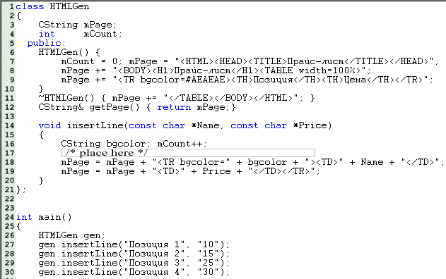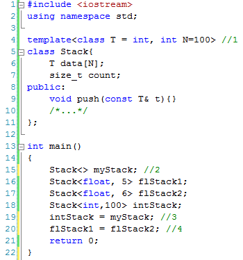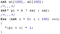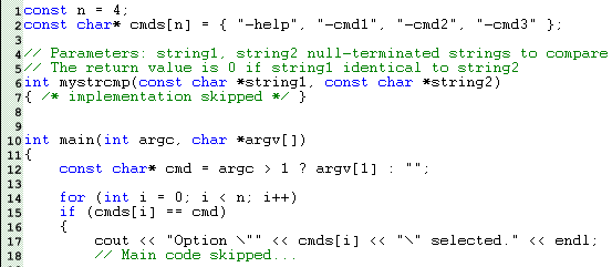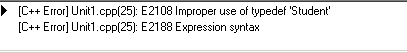 Список вопросов базы знанийПрограммирование на C++Вопрос id:94521 Тема/шкала: Общие вопросы программирования на C++. ![]() По плану автора программы приведенный фрагмент кода должен заполнять массив числами Фибоначчи (простая последовательность чисел: первые два члена равны 1, а каждый последующий равен сумме двух предыдущих). Но отладка показала – массив заполнен ошибочными значениями. Какие изменения следует внести в код программы, чтобы решить данную проблему? ?) Заменить строку 6 на: const int Offs1 = sizeof(Fibo); ?) Заменить строку 6 на: const int Offs1 = sizeof(Fibo[0]); ?) Заменить строку 6 на: const int Offs1 = 1; ?) Заменить строку 6 на: const int Offs1 = sizeof(int); ?) Заменить строку 7 на: const int Offs2 = sizeof(double) * 2; Вопрос id:94522 Тема/шкала: Базовые конструкции и синтаксис языка. Укажите верное утверждение об условном операторе. ?) Ключевое слово then используется для определения конца условия оператора ?) Внутри тела оператора для прерывания его выполнения допустимо использовать оператор break ?) В условии оператора допустимо объявлять переменные ?) Ключевое слово then используется для определения начала тела оператора ?) Внутри тела оператора для прерывания его выполнения допустимо использовать оператор continue Вопрос id:94523 Тема/шкала: Вопросы эффективности кода. Программа-генератор прайс-листов на продукцию компании в HTML-формате основана на классе-генераторе HTML-кода. В функции insertLine() добавляются строки таблицы. Выберите строку, которую необходимо вставить в позицию 17 для того, чтобы цвета строк для четных и нечетных чередовались. ![]() ?) bgcolor = mCount % 2 ? "#CECECE" : "#DEDEDE"; ?) bgcolor = mCount / 2 ? "#CECECE" : "#DEDEDE"; ?) bgcolor = mCount % 2 ? "#CECECE" : "#СEСEСE"; ?) bgcolor = mCount % 3 ? "#CECECE" : "#DEDEDE"; ?) bgcolor = mCount ? "#CECECE" : "#DEDEDE"; Вопрос id:94524 Тема/шкала: Работа с памятью. Вы разрабатываете программу для учета студентов вуза. Вы создали класс Student: ![]() При попытке создать массив объектов типа Student компилятор выдает сообщение об ошибке. ![]() Как можно исправить данную ошибку? ?) Изменить тип членов класса Student на std::string ?) Создать массив не в стеке, а в динамической памяти ?) Перегрузить операторы new, delete в классе Student, а массив создавать в динамической памяти ?) Добавить в определение класса Student конструктор без параметров ?) Перегрузить оператор new в классе Student Вопрос id:94525 Тема/шкала: Шаблоны. Укажите неверное утверждение о шаблонах классов. ?) Шаблон класса может иметь в качестве параметров, как некоторые типы, так и константы ?) Конкретные классы на основе шаблонов создаются на этапе выполнения программы ?) Если два класса созданы на основе одного и того же шаблона классов, то это не означает, что они связаны между собой отношением наследования ?) До инстанцирования шаблона класса компилятор не может провести полную проверку данного шаблона на наличие семантических ошибок ?) Класс, созданный на основе шаблона, не является потомком этого шаблона Вопрос id:94526 Тема/шкала: STL. Какой контейнер не входит в библиотеку STL? ?) все перечисленные контейнеры входят в STL ?) queue ?) stack ?) bitset ?) multiset Вопрос id:94527 Тема/шкала: STL. Какой тип итератора используется в контейнере std::vector? ?) RandomAccessIterator (Итератор произвольного доступа) ?) OutputIterator (Итератор вывода) ?) ForwardIterator (Прямой итератор) ?) BidirectionalIterator (Двусторонний итератор) ?) InputIterator (Итератор ввода) Вопрос id:94528 Тема/шкала: Общие вопросы программирования на C++. При написании модуля, содержащего класс Stack, реализующий функциональность стековой структуры д