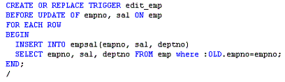 ?) ![]() ?) Невозможно увеличить размер столбца после того, как в таблицу были добавлены строки ?) ![]() ?) ![]() ?) ![]() Вопрос id:94632 Тема/шкала: Привилегии, роли, совместный доступ к данным. С какими привилегиями выполняется процедура DBMS_DDL.ALTER_COMPILE? ?) С привилегией ALTER ANY PROCEDURE ?) С привилегией ALTER ANY TABLE ?) C привилегиями вызвавшего процедуру пользователя ?) С привилегиями DBA ?) С привилегиями владельца пакета DBMS_DDL SYS Вопрос id:94633 Тема/шкала: Отладка кода PL/SQL. Какое из перечисленных ниже исключений является стандартным? ?) TOO_MORE_ROWS ?) DUPLICATE_VALUE_ON_INDEX ?) MY_ORACLE_EXCEPTION ?) ORACLE_STANDART_EXCEPTION ?) NO_DATA_FOUND Вопрос id:94634 Тема/шкала: Манипулирование данными. Создан триггер: ![]() и выполнили команду: Каким будет результат выполнения данной команды? ?) Произойдет ошибка, так как нельзя указывать имена столбцов в событии триггера ?) Данные в таблице emp будут обновлены, а в таблицы empsal не изменятся ?) Произойдет ошибка, и значения в обеих таблицах не изменятся ?) Данные в таблице empsal будут обновлены, а в таблицы emp не изменятся ?) Изменения успешно произойдут в обеих таблицах Вопрос id:94635 Тема/шкала: Основные синтаксические конструкции языка PL/SQL. Функция calculate имеет следующее объявление: ![]() Каким способом можно вызвать функцию calculate в операторе SQL? ?) ![]() ?) ![]() ?) ![]() ?) ![]() ?) ![]() Вопрос id:94636 Тема/шкала: Применение языка PL/SQL. Дана таблица DEPT, содержащая поля: