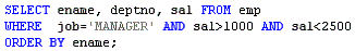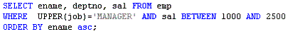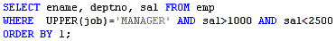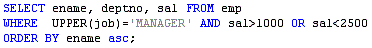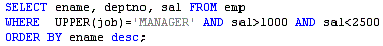 Очень большое число ?) Большое число Вопрос id:94657 Тема/шкала: Применение языка PL/SQL. В таблице emp хранится следующая информация о служащих: фамилия, номер подразделения, должность и зарплата. Вы не знаете, в каком регистре сохраняются строки, но хотите извлечь всех менеджеров с зарплатой больше 1000 и меньше 2500, отсортировав их по фамилии в порядке возрастания. Какой оператор позволит решить поставленную задачу? ?) ?) ?) ?) ?) Вопрос id:94658 Тема/шкала: Основные синтаксические конструкции языка PL/SQL. Процедура coord_action имеет следующее объявление: