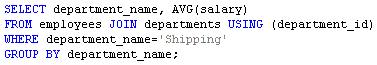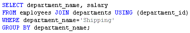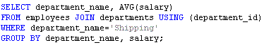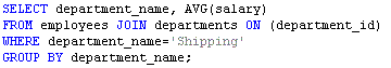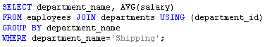 Какой запрос возвращает среднюю зарплату в отделении Shipping? ?) ![]() ?) ![]() ?) ![]() ?) ![]() ?) ![]() Вопрос id:94662 Тема/шкала: Основные синтаксические конструкции языка PL/SQL. Какой порядок следования конструкций в запросе является правильным? ?) SELECT FROM GROUP BY HAVING ORDER BY WHERE ?) SELECT FROM WHERE GROUP BY HAVING ORDER BY ?) SELECT WHERE FROM GROUP BY HAVING ORDER BY ?) SELECT FROM GROUP BY HAVING WHERE ORDER BY ?) SELECT FROM HAVING GROUP BY WHERE ORDER BY Вопрос id:94664 Тема/шкала: Манипулирование данными. Дана таблица EMP, содержащая поля: