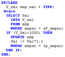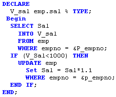 Список вопросов базы знанийOracle PL/SQLВопрос id:94679 Тема/шкала: Основные синтаксические конструкции языка PL/SQL. В вашей схеме находится таблица emp(empno NUMBER, ename VARCHAR2(20) , job VARCHAR2(20), deptno NUMBER, hiredate DATE, sal NUMBER). Для упрощения ввода данных создана следующая процедура: ![]() Какой фрагмент кода следует выполнить, чтобы предоставить пользователю John возможность вводить информацию в таблицу emp, используя процедуру add_emp? ?) ?) ?) ?) ?) Вопрос id:94680 Тема/шкала: Манипулирование данными. Необходимо увеличить на 10% зарплату служащим, если она составляет менее \$1000. Используйте подстановки SQL*Plus для доступа к номерам служащих. Какой фрагмент кода позволит решить поставленную задачу? ?) ![]() ?) ![]() ?) ![]() ?) ![]() Вопрос id:94681 Тема/шкала: Применение языка PL/SQL. База данных содержит следующие таблицы и поля: employees(employee_id, first_name, last_name, salary, manager_id, department_id), departments(department_id, department_name, manager_id, location_id). Необходимо составить отчет, содержащий имена всех сотрудников, и названия отделений, в которых они работают. В этот отчет должны быть включены те сотрудники, которые не приписаны ни к одному из отделений. Однако отчет НЕ должен содержать названий отделений без сотрудников. Какой запрос позволит решить поставленную задачу? ?) ?) ?) ?) ![]() ?) Вопрос id:94682 Тема/шкала: Применение языка PL/SQL. В таблице emp хранится следующая информация о служащих: фамилия, номер подразделения, должность, зарплата и комиссия. Комиссию получают не все служащие. Вам поручено задание составить отчет содержащий фамилию, номер подразделения, должность и годовой заработок служащих, отсортировав их по номеру подразделения в порядке возрастания, и в порядке убывания зарплаты в каждом подразделении. Какой оператор позволит решить поставленную задачу? ?) ?) ?) ?) ?) Вопрос id:94683 Тема/шкала: Привилегии, роли, совместный доступ к данным. Дано выражение SQL: ![]() Какое количество ролей будет доступно пользователю scott после выполнения данного выражения? ?) 2 ?) 3 ?) 4 ?) 1 Вопрос id:94684 Тема/шкала: Отладка кода PL/SQL. Следуя нижеперечисленным утверждениям можно уменьшить количество ошибочных перекомпиляций, возникающих в результате зависимостей. Какое из утверждений является неверным? ?) Использовать запросы с SELECT * ?) Обращаться к функциям как имя_пакета.имя_функции ?) Объявлять записи используя атрибут %ROWTYPE ?) Объявлять переменные используя атрибут %TYPE ?) Включать список полей в оператор INSERT Вопрос id:94685 Тема/шкала: Манипулирование данными. Каким будет результат выполнения функций: 1 substr(‘123ABCD567EF’,4,7) 2 ceil(-1.76) 3 trim(0 from ‘000456GJ000’) ?) 1 BCD567E 2 -2 3 000456GJ ?) 1 BCD567E 2 -1 3 GJ ?) 1 ABCD567 2 -1 3 456GJ ?) 1 ABCD567 2 -2 3 GJ ?) 1 ABCD567 2 -1 3 000456GJ Вопрос id:94686 Тема/шкала: Основные синтаксические конструкции языка PL/SQL. Какие 2 утверждения о подпрограммах на PL/SQL являются верными? ?) Исполняемый раздел не является обязательным ?) Состоят из раздела объявлений, исполняемого раздела и обработчика исключительных ситуаций ?) Обработчик исключительных ситуаций обрабатывает только исключительные ситуации, предварительно объявленные в разделе объявлений ?) Раздел объявлений не является обязательным ?) Любая подпрограмма должна содержать раздел объявлений и исполняемый раздел Вопрос id:94687 Тема/шкала: Применение языка PL/SQL. Каким будет результат выполнения приведенной ниже команды: ![]() ?) Эна нчень длеиннч стросч ?) Эна очень деиннч ссч ?) Эна очень еиннч сч ?) Эна очень длеиннч стросч ?) Эна нчень деиннч ссч Вопрос id:94688 Тем