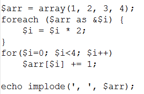 Необходимо вывести в браузер строку "php dnez". Выберите правильное решение: ?) $string = trim($string); echo strrev($string); ?) $string = str_to_lower($string); echo strrev($string); ?) $string = strtolower($string); echo strrev($string); ?) $string = strtolower($string); echo stringrev($string); Вопрос id:13435 Тема/шкала: HTTP и веб-формы Каким HTTP методом по умолчанию отправляются данные из веб-формы? ?) OPTIONS ?) PUT ?) GET ?) POST ?) FORM Вопрос id:13436 Тема/шкала: Массивы и строки Что будет выведено в браузер после выполнения кода? ![]() ?) Array ( [0] => 1 [1] => 2 [2] => 3 ) ?) Array ( [0] => 1 [4] => 2 [8] => 3 ) ?) Array ( [0] => 5 [1] => 6 [2] => 7 ) ?) Нет правильного ответа Вопрос id:13437 Тема/шкала: Массивы и строки Что будет выведено в браузер после выполнения кода? ![]() ?) Ошибка ?) bool(true) ?) Array([1] => a [2] => b) ?) Ничего не будет выведено Вопрос id:13438 Тема/шкала: Массивы и строки Какая функция добавляет новый элемент в начало массива? ?) array_unshift() ?) array_push() ?) array_unique() ?) array_pop() ?) array_shift() Вопрос id:13439 Тема/шкала: Массивы и строки Что будет выведено в браузер после выполнения кода? ![]() ?) 0 = e 1 = x 2 = z ?) Ошибка E_PARSE ?) a1 = e a2 = x a3 = z ?) a2 = e a1 = x a3 = z Вопрос id:13440 Тема/шкала: Основы языка Что будет выведено в браузер после выполнения кода? ![]() ?) Ошибка E_PARSE ?) 13249 ?) 13179 ?) 13149 |
