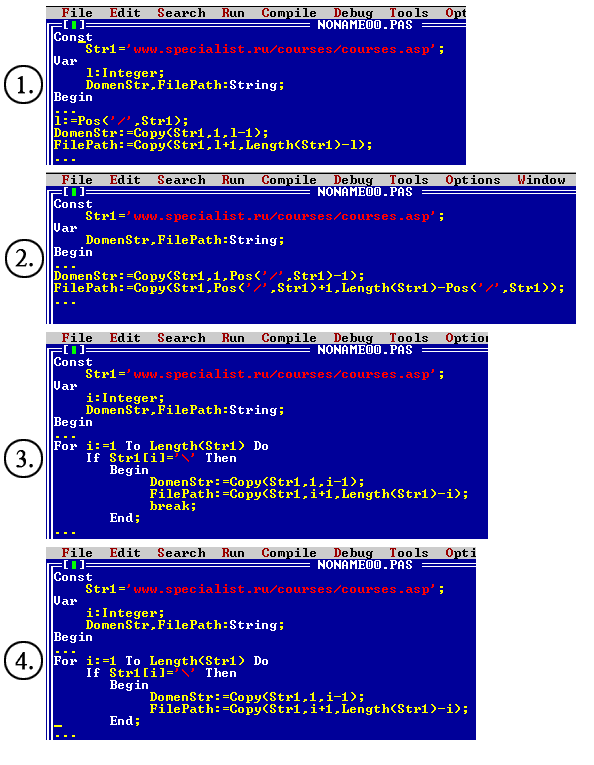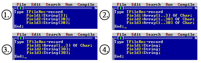 Список вопросов базы знанийПрограммирование на языке PascalВопрос id:14000 Под термином переполнение (overflow) обычно понимают ?) Ситуацию, когда результат каких-либо вычислений превышает максимально возможные пределы какого-либо типа данных ?) Ситуацию, когда слишком длинную программу не может обработать компилятор ?) Слишком большое количество введенных переменных ?) Ситуацию, когда слишком длинную строчку программы не может обработать компилятор Вопрос id:14001 Какая из функций возвращает дробную часть вещественного числа? ?) int ?) frac ?) round ?) trunc Вопрос id:14002 Допустим, некоторая строка s содержит, помимо букв, последовательность цифр, представляющую собой целое положительное число, не превышающее по значению максимально допустимое типом integer. Необходимо преобразовать это число из строкового представления в числовое. Как этого можно добиться? Например, S:='some words 12345'; Необходимо, чтобы число 12345 хранилось в переменной J:Longint, т.е. J=12345; ![]() ?) 1 ?) 4 ?) 3 ?) 2 Вопрос id:14003 Какая логическая операция возвращает False только в том случае, когда только один из операндов равен False? ?) Or ?) Xor ?) Not ?) And Вопрос id:14004 Необходимо перебрать ровно половину элементов некоторого массива, причем , в случае, когда содержит нечетное количество элементов, то необходимо перебрать все, включая средний. Например, если количество элементов =5, то перебрать нужно все от элемента с индексом 1, до элемента с индексом 3. Укажите самый короткий и правильный вариант организации цикла для массива произвольного размера, равного N. ![]() ?) 2 ?) 4 ?) 3 ?) 1 Вопрос id:14005 Что выведет на экран строчка writeln(2+2=3) ? ?) 2+2=3 ?) Ничего ?) FALSE ?) Из-за синтаксической ошибки программа, содержащая эту строчку, не будет выполнена Вопрос id:14006 Укажите определение, которое соответствует понятию "рекурсии" ?) Использование вложенных циклов ?) Вызов процедуры или функции самой себя ?) Повторный вызов процедуры или функции ?) От английского Recourse – повторное прохождение курса «Основы программирования на языке Паскаль» Вопрос id:14007 В каких из перечисленных ниже пунктах операции располагаются в порядке возрастания их приоритета? ?) =, <,>,not, +, *, div ?) <>, *, not, and, or, = ?) -, +, and, or, * , =, not ?) =, +, -, *, /, and, not Вопрос id:14008 Чему будет равно значение следующего логического выражения, если A:=True; B:=False; C:=False? Изменится ли оно, если изменить значения всех переменных на противоположные? A or B and C or C ?) True, не изменится ?) True, изменится ?) False, изменится ?) False, не изменится Вопрос id:14009 Укажите при помощи какой процедуры осуществляется преобразование типов из строкового в вещественный? ?) Eval ?) Str ?) Convert ?) Val Вопрос id:14010 Среди приведенных фрагментов, укажите тот, который имеет линейную структуру ![]() ?) 2 ?) 4 ?) 1 ?) 3 ?) 5 Вопрос id:14011 Если значение логических переменных х и y равно true, то значение x and y будет равно ?) False ?) Not ?) 10 ?) True Вопрос id:14012 Какие аргументы необходимо указать для процедуры Circle ?) Координату левого верхнего угла квадрата, в который будет вписана окружность и длины его сторон ?) Координаты центра и радиус окружности ?) Координаты прямоугольника, в который будет вписана окружность: координаты левого верхнего угла и координаты правого нижнего ?) Координаты прямоугольника, в который будет вписана окружность: координаты левого нижнего угла и координаты правого верхнего ?) Координаты прямоугольника, в который будет вписана окружность: x и y каждого из 4-х углов Вопрос id:14013 В каком поря