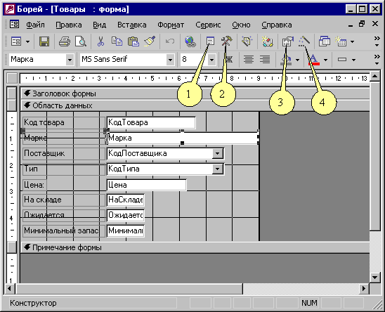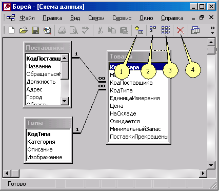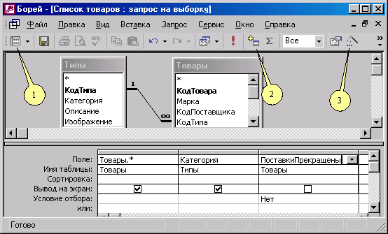 Список вопросов базы знанийРабота в Microsoft Access 2003Вопрос id:14295 Тема/шкала: Отчеты Какие кнопки в окне Мастера отчетов позволяют удалять поля из списка выбранных полей? ![]() ?) 3 ?) 1 ?) 4 ?) 2 Вопрос id:14296 Тема/шкала: Формы В форме «Клиенты» была создана маска ввода для поля «Телефон». Что произойдет при сохранении свойства «Маска ввода» в форме? ![]() ?) Автоматически измениться значение свойства «Маска ввода» для поля «Телефон» в исходной таблице «Клиенты» ?) Автоматически измениться значение свойства «Маска ввода» для поля «Телефон» во всех формах, созданных на основе таблицы «Клиенты» ?) Свойства «Маска ввода» сохраниться только для поля «Телефон» в текущей форме Вопрос id:14297 Тема/шкала: Таблицы Чтобы определить первичный ключ в таблице «Товары» по полю «КодТовара», нужно выделить поле «КодТовара» и нажать кнопку… ![]() ?) 1 ?) 2 ?) 3 ?) 4 Вопрос id:14298 Тема/шкала: Сортировка и фильтрация Какая команда позволяет изменить порядок сортировки записей в таблице? ?) Данные - Сортировка ?) Записи – Сортировка по возрастанию (Сортировка по убыванию) ?) Вид – Сортировка и группировка ?) Сервис – Порядок сортировки Вопрос id:14299 Тема/шкала: Запросы Какое условие отбора для поля «Товар» нужно задать в запросе, чтобы выбрать все товары на букву К (смотри результат выборки на рисунке)? ![]() ?) Like "К*" ?) Like "*К*" ?) Like "*К" ?) Like "К" Вопрос id:14300 Тема/шкала: Макросы В одной из макрокоманд макроса выполняется открытие формы «Клиенты». Затем эта форма была переименована. Сколько макрокоманд будет выполнено, если запустить этот макрос? ?) Не будет выполнено ни одной макрокоманды, так как в макросе содержится ссылка на старое (несуществующее) имя формы ?) Будут выполнены все макрокоманды кроме макрокоманды, содержащей ссылку на старое (несуществующее) имя формы ?) Будут выполнены все макрокоманды, так как в макросе произойдет автозамена старого имени формы на новое ?) Будут выполнены все макрокоманды до макрокоманды, содержащей ссылку на старое (несуществующее) имя формы Вопрос id:14301 Тема/шкала: Макросы Какой макрос выполняется автоматически при запуске Microsoft Access? ?) AutoOpen ?) AutoStart ?) AutoRun ?) AutoExec ?) Такого макроса не существует Вопрос id:14302 Тема/шкала: Сортировка и фильтрация Какую кнопку нужно нажать, чтобы вызвать команду «Изменить фильтр»? ![]() ?) 4 ?) 2 ?) 5 ?) 1 ?) 6 ?) 3 Вопрос id:14303 Тема/шкала: Запросы Какое из условий отбора в запросе для поля, имеющего тип данных «Дата/Время», является верным? ?) <= "20.05.2005" ?) <= *20.05.2005* ?) <= #20.05.2005# ?) <= {20.05.2005} Вопрос id:14304 Тема/шкала: Работа с данными в таблицах и формах Какой тип данных нужно использовать для поля таблицы, в котором будут храниться номера мобильных телефонов вида: +7 (916) 222-22-22? ?) Текстовый ?) Денежный ?) Поле MEMO ?) Числовой ?) Гиперссылка Вопрос id:14305 Тема/шкала: Сортировка и фильтрация Какое условие отбора нужно задать, чтобы выбрать все товары с ценой, меньше или равной 850 руб.? ?) =< 850 ?) <= 850 ?) <=> 850 ?) => 850 ?) >= 850 Вопрос id:14306 Тема/шкала: Формы Какую кнопку нужно нажать на панели инструментов для того, чтобы открыть окно «Свойства»? ![]() ?) 2 ?) 1 ?) 3 ?) 4 Вопрос id:14307 Тема/шкала: Формы Какие инструменты позволяют менять формат элементов отчета? ![]() ?) 3 ?) 5 ?) 2 ?) 1 ?) 6 ?) 4 Вопрос id:14308 Тема/шкала: Сортировка и фильтрация Какую кнопку нужно нажать, чтобы вызвать команду «Фильтр по выделенному»? ![]() ?) 4 ?) 6 ?) 1 ?) 5 ?) 3 ?) 2 Вопрос id:14309 Тема/шкала: Таблицы Укажите тип данных поля таблицы, которое можно связа